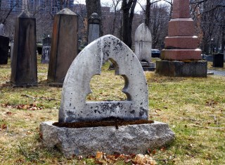 Most headstones are very solid, as if to say, “I was here and here I am and this is the end!” This one on the other hand seems to invite one to ponder what is on the other side. Its very openness invites one to be drawn into the mystery that is death. Its unique shape had me pondering life and death and life again. I believe in life after death, even as I have no idea what that life may be like. The curved shape and the tree or flower like opening seem distinctly feminine. As much as it looks like a window, it invites me to pass through it like a doorway. What lies on the other side? What lessons does the other side have for us?Whatever markings were on it are long since worn away by wind and rain and salt air. Does it mark a woman’s grave? A man’s? Its placement close to the centre of cemetery tells us that it is one of the earlier graves. Whoever you are and wherever you are, blessings on your continuing journey.