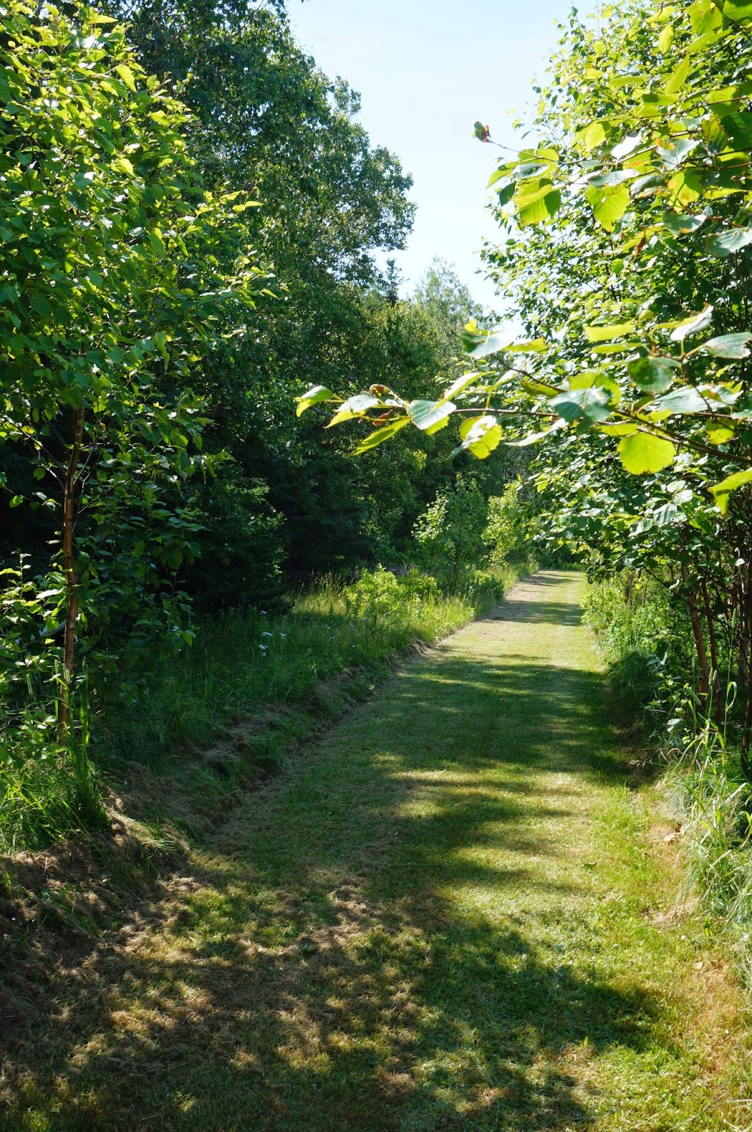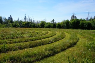This is entrance to the labyrinth at the Singing Sands Inn. I didn’t realize when I started down the path that it was an unfamiliar design to me, a two-mouthed Baltic Wheel Labyrinth or Goddess Labyrinth. The labyrinth was one of the reasons I chose to stay at Singing Sands Inn on my recent Photography Trip to PE. After breakfast on my first morning, I headed down to it. I was startled at how disoriented I felt when I didn’t recognize the pattern immediately. But knowing that labyrinths are not mazes, I started on on the path, pondering why I wanted to know the design. It’s no secret to my friends, family and congregation that I like to plan things, I like to know what’s going to happen when and who is responsible for making it happen. This has been both blessing and curse. As I walked the first curving path I kept trying to see the whole of it; but it was impossible. It was a large labyrinth and since it was simply mowed into the meadow I could only see part of it at any given point. After a few minutes I gave up trying to discern the entire design and simply trusted in the process.