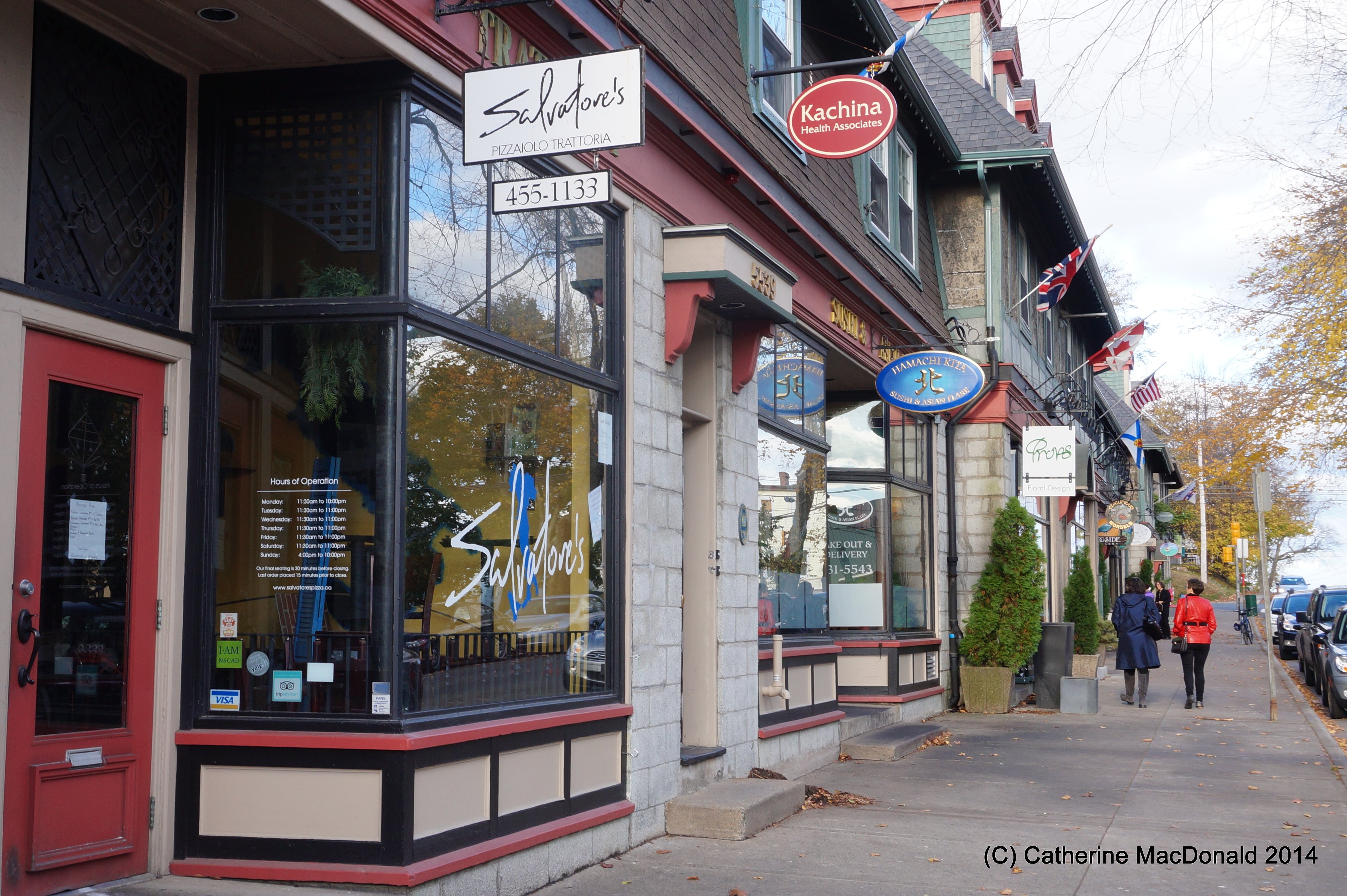 This is part of one of the most walkable neighbourhoods in the city of Halifax, Nova Scotia. Called The Hydrostone Market it is part of the North End, an area which has become increasingly attractive over the years. After years of being the poor cousin of the rest of Halifax, it has become a haven for artistic types, along with a beautiful housing area that are set on wide boulevards. which has become a sought after neighbourhood. This street is home to unique shops, galleries, restaurants and coffee shops and in good weather there are always people wandering in and out of the shops, enjoying coffee or a glass of wine at one of the sidewalk cafes. Across the street there is a little pocket park, again a place to gather, especially for dog owners. There is music during the summer, my church has hosted a Blessing of the Animals for a number of years. It is one of the best streets in the city!
