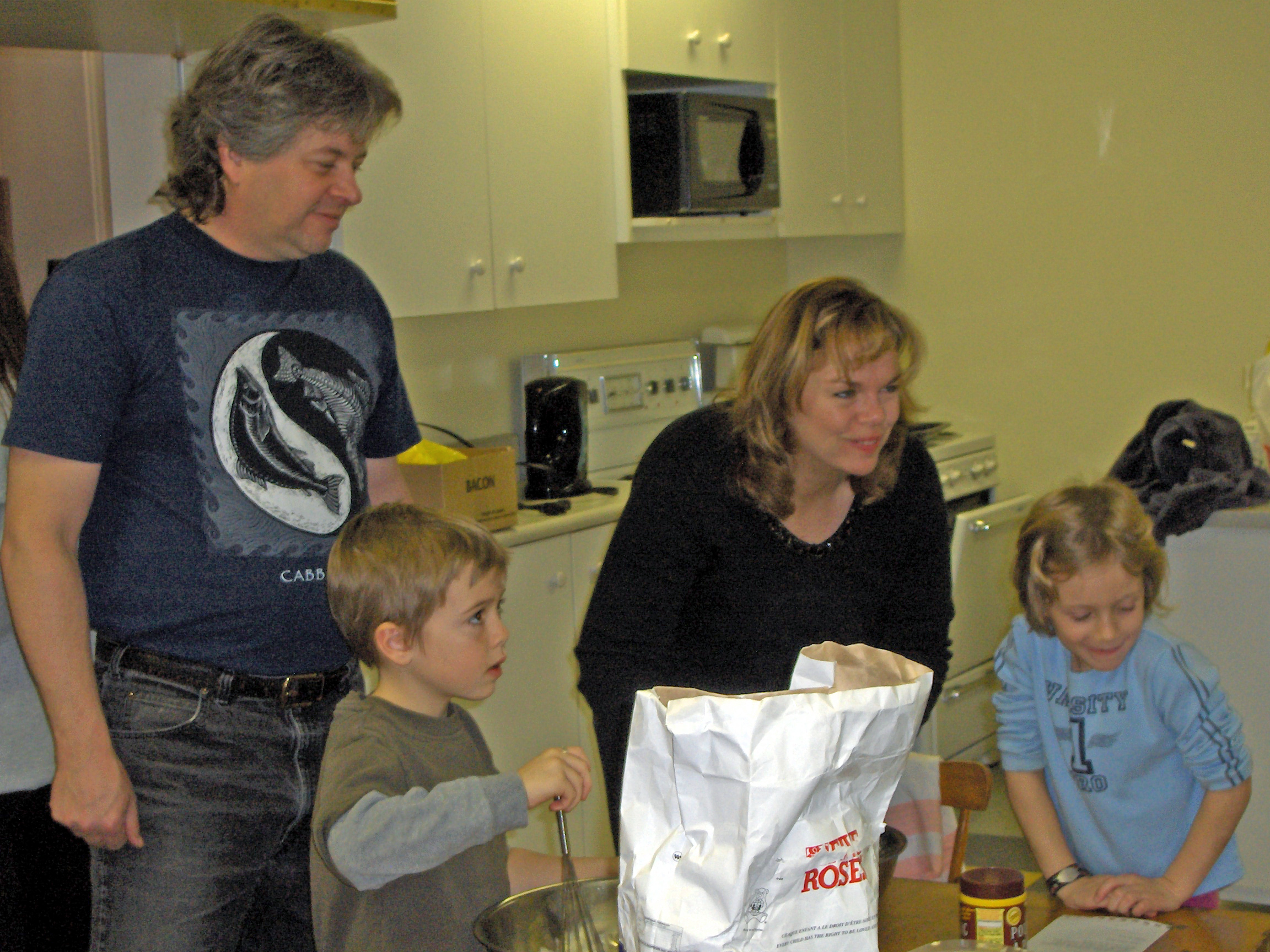 We started with making a couple of batches of cinnamon biscuits, so that there would be a quick reward. Each child took a turn in measuring/adding/mixing ingredients and then they were popped in the oven. Then we started the multi-grain and pita breads as they needed time to rise. Co-operation reigned high that morning with the adults each taking a group of children under their wing. We quickly discovered that it was better when family groups were separated.