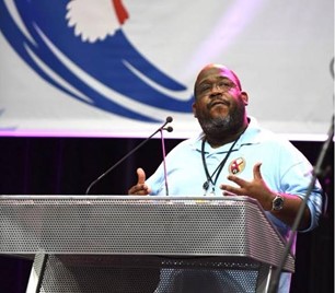 One of the intercultural observers gets up to make his presentation, he is a United Church minister, the Rev. Dr. Paul Walfall, a black man, who speaks about his experience of being invisible at General Council, that only other black people speak to and with him and he jokingly says, ‘At my size, I am NEVER invisible!”