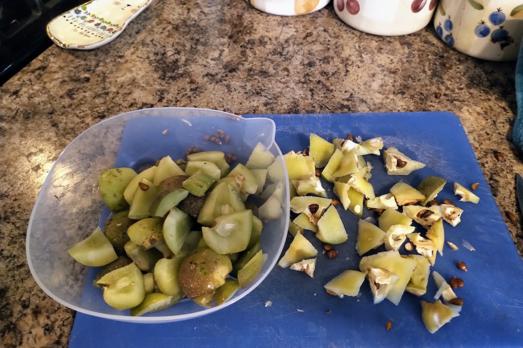 Last week, I canned 25 pounds of beets, the week before my husband and I bbq’d five dozen cobs of corn, took the corn off the cobs and froze it, earlier this summer, I made 24 pints of strawberry jam. Yesterday, I decided that rather than let the quince fall off the tree and lay on the ground and rot, the way they usually do, I’d try my hand at making quince jelly. So, I picked about 40 of them, they are a small, very sour fruit, not good for eating at all. I washed, quartered, cored, cooked, mashed them, strained the mash through cheesecloth for about 5 hours, then cooked the resulting juice with sugar for about an hour and wound up with 4 jars of quince jelly! Bounty from the earth, only my time, energy and some sugar.