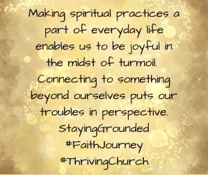 So what does this have to do with thriving churches? Thriving churches are joyful… not because they don’t have any challenges, but because they meet those challenges with a spirit of yes! We can tackle that! And why are thriving churches joyful? Because they are connected to the sacred. They are intentional about practices that join them to God… to something bigger than themselves… something that enables them to rejoice in the Lord always, no matter their circumstances.
