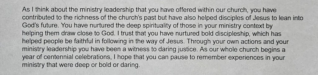 Last month I received a letter from the Moderator congratulating me on 20 years of ordained ministry. I was a bit surprised to discover how touched I was. Even though I know it was a form letter AND I received it it both official languages, the words still stirred my heart, especially the ones of the middle paragraph.