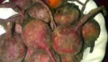 Those are the words that sprang to mind as I opened a bag of candy beets to cook them for supper. We get a box of fruit and vegetables each week from Taproot Farms. This week we got beets! One of my favourite veggies. As you can see from the picture, they still had a…